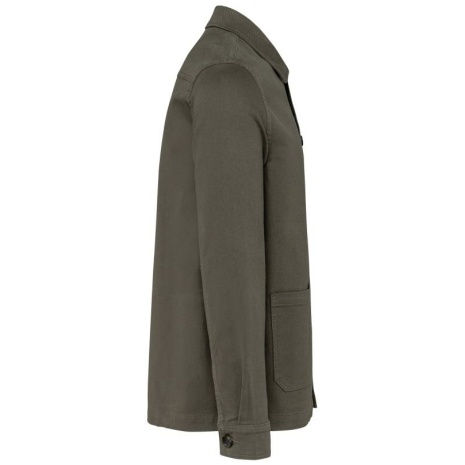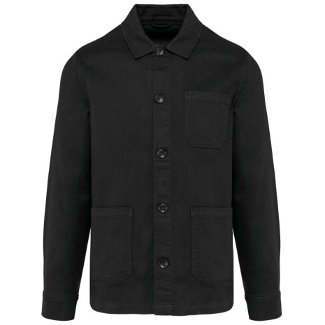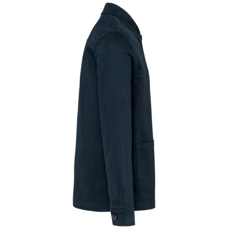 Heren jas workerย No label: 100% personaliseerbaar naar uw merk. Personaliseerbare patch op het bovenstuk. Trendy vintage verwassen effect. 100% katoen. Twillstof. Comfortabele snit. Knooplijst en manchetten met knopen met hoornlook. Opgezette borstzak aan de linkerkant en twee opgezette zakken onderaan, met verstevigingspunten op de hoeken van de zakken. Kraag met fantasiestaander. Manchet met knopen van gerecycleerd plastic en een split. Ronde plooi en inzetsel aan de bovenkant van de rug. Enkel stiksel aan de onderkant. Voering aan de bovenkant, met personalisatiepatch in toon-op-toon katoen. Produkt gewassen na montage: mogelijke kleurverschillen tussen de produkten. Verwassen effect. Geen merklabel, maar een maatlabel in de kraag voor eenvoudige personalisatie.