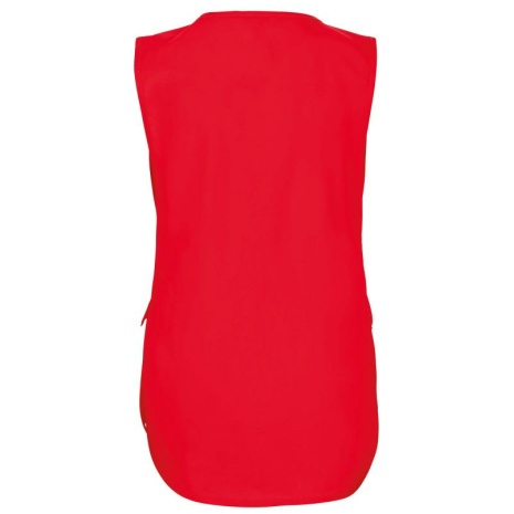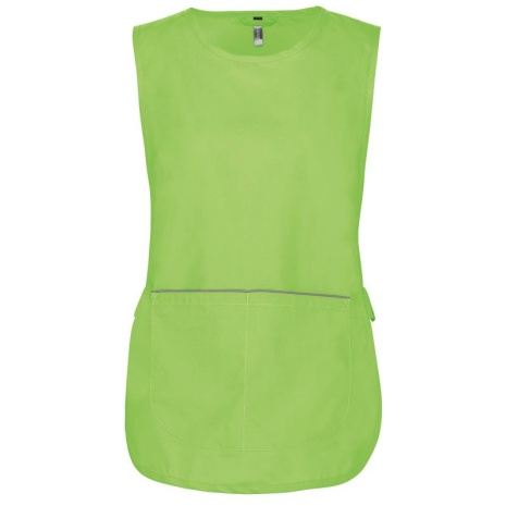 Damestuniek Wassen op 60 °C, ideaal voor professioneel gebruik. Een sterke, soepele en duurzame stof. Comfortabele en lichte snit. 65% polyester / 35% katoen. Wasbaar op 60 °C. Sterke stof en comfortabele snit. Grote zak aan de voorkant, bestaande uit 2 vakken met 1 binnenzakje. Regelbaar aan de zijkant met 2 drukknopen. Contrasterend biesje bovenaan de zak. 1 naametiket aan de binnenkant. Afgeronde boord. Lengte maat L/XL: 78 cm.