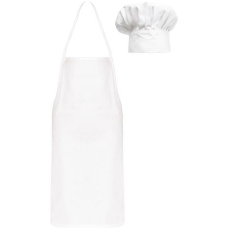 Chefkok-set voor kinderenย Complete kit, ideaal voor koks in de dop. Gemakkelijk in onderhoud. 100% katoen. Set bestaande uit een koksmuts en een schort. Regelbare koksmuts dankzij klittenband.
