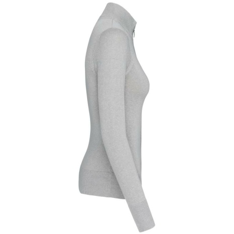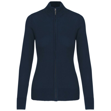 Dames cardigan met ritsย Casual look, voor een ongedwongen, professionele outfit. Getailleerde snit die iedere vrouw past. Dik en comfortabel. 50% katoen / 50% acryl. Getailleerde snit. Opstaande 2-laagse kraag. Metaalkleurige ritssluiting. Nektape.