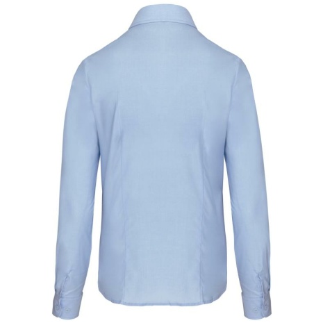 Dames Oxford blouse lange mouwen De klassieker van het Oxford style corporate overhemd. Easy-care behandeling voor een gemakkelijk onderhoud. Onmisbaar in de professionele garderobe. 70% oxford katoen / 30% polyester. Gemakkelijk in onderhoud ( Easy Care). Kraag zonder knopen. Toon op toon knopen. 2 knoopjes aan de kraag. Plooitjes op de rug en borst voor een comfortabele pasvorm. Verstelbare mouwen. 2 extra knopen. Afgerond boord aan de onderkant.