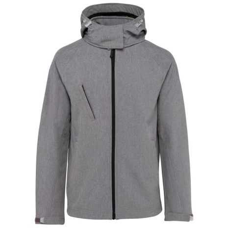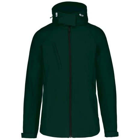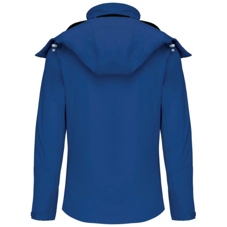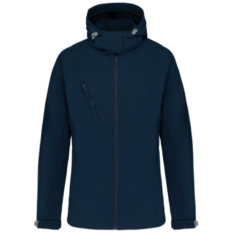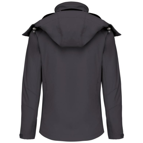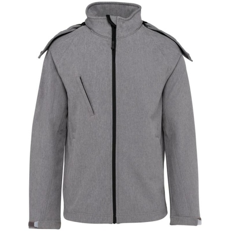 Dames softshell jas met afneembare capuchonย Softshell 3 lagen voor een ideale bescherming. Technisch, winddicht, ademend en waterdicht membraan. Biedt een optimaal comfort dankzij het elastische materiaal. Stof in 3 lagen op elkaar geklit. Ademend 1000 g/mยฒ/24h en 5000 mm waterdicht. Buitenkant : 95% polyester en 5% elasthan. Tussenlaag: ademend ventilerend membraan. Binnenkant: anti-pluis polyester. Raglan mouwen. Ritssluiting. 2 voorzakken met rits. 1 borstzak rechts met rits. Afneembare capuchon met aanrijgkoord en klittenbandsluiting. Klittenbandsluiting aan de mouwuiteinden. Verborgen drukkersrits op borsthoogte.