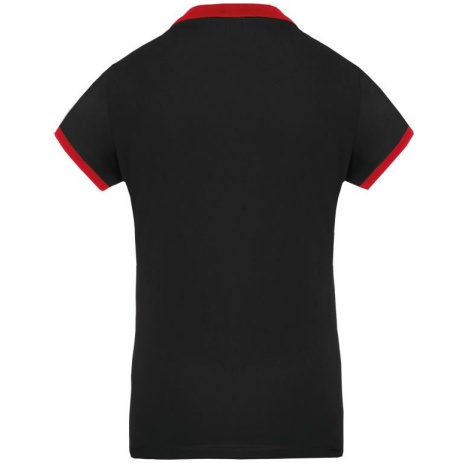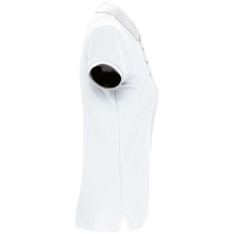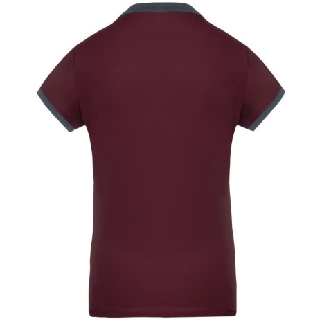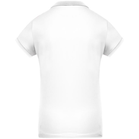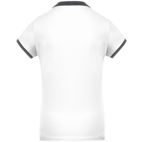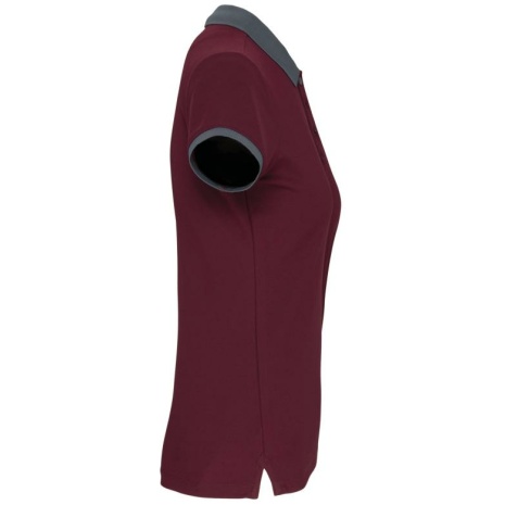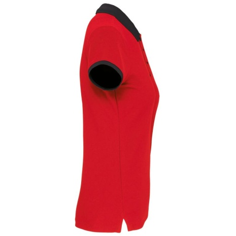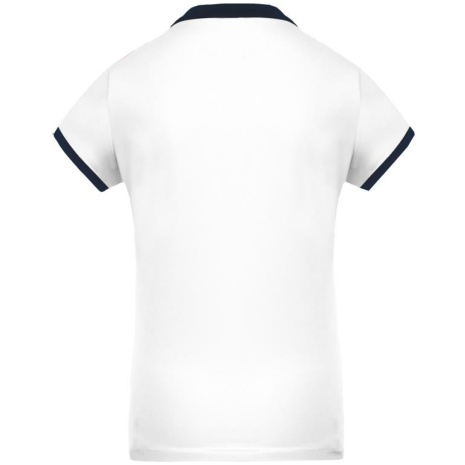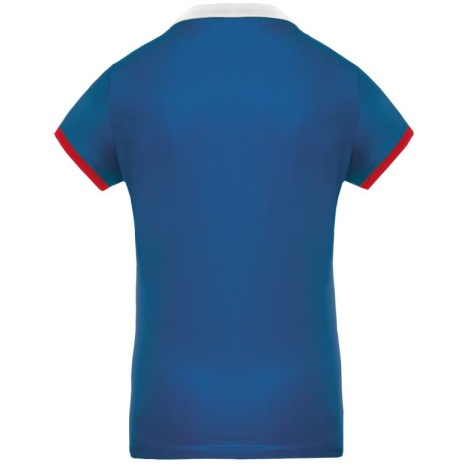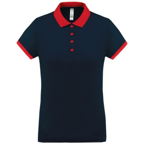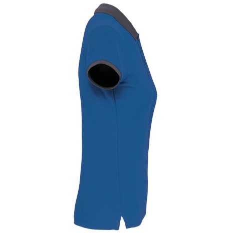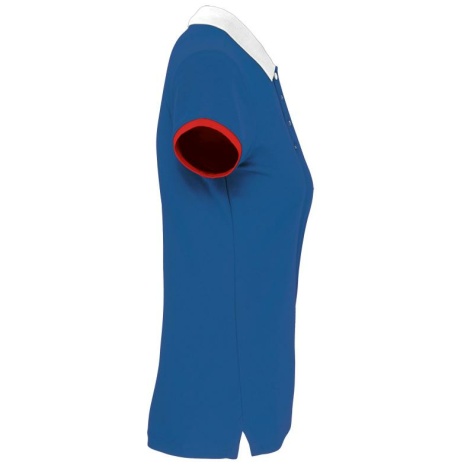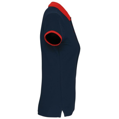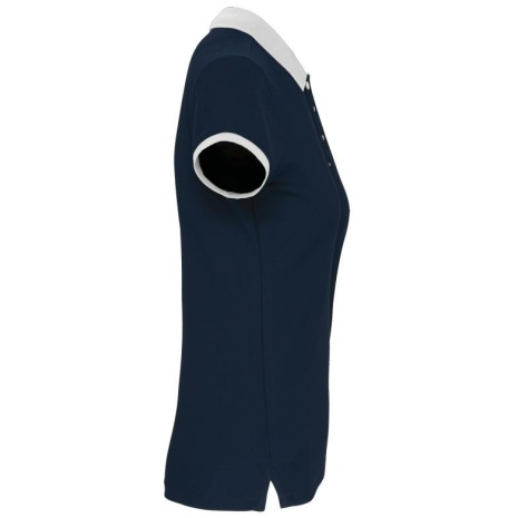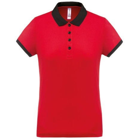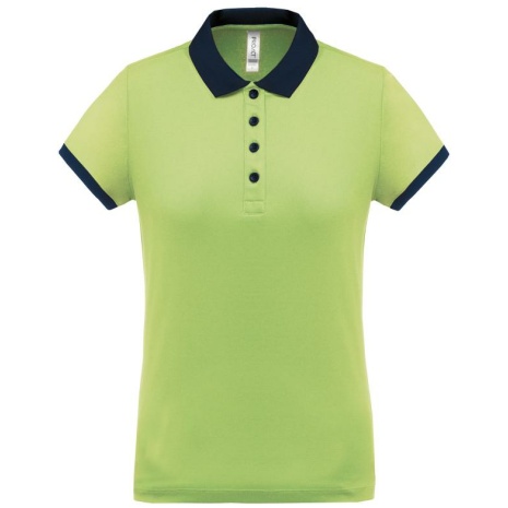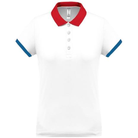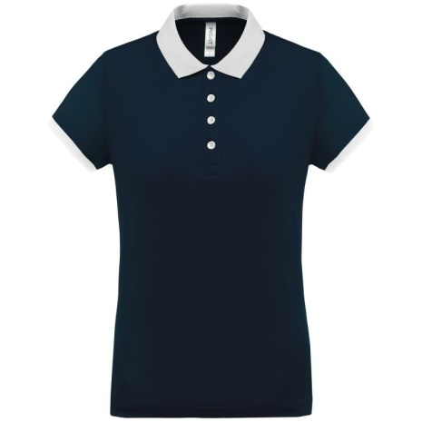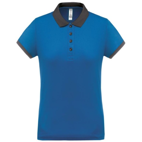 Dames-sportpolo 100% polyester: heel sterk, licht en ademend. Getailleerde snit en moderne look. 100% piquépolyester Cool Plus®. Getailleerde snit en moderne look. Kraag en mouwuiteinden in contrasterende ribboord. Knoopsluiting met 4 knopen (contrasterend of effen, afhankelijk van het model). Zijsplitten.
