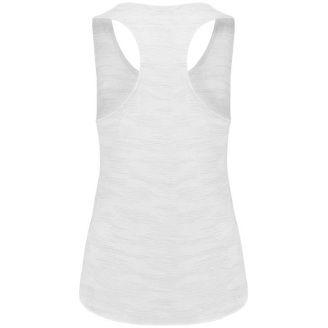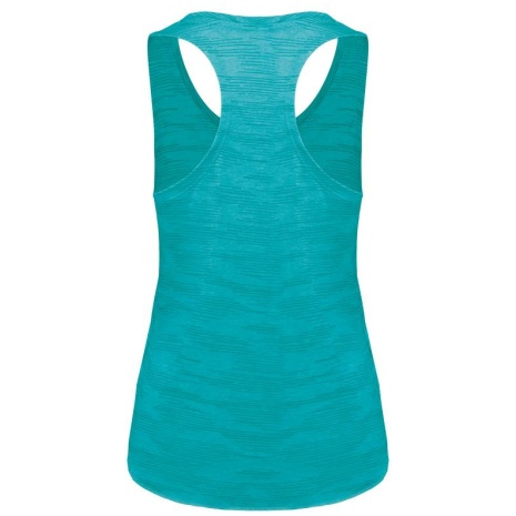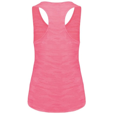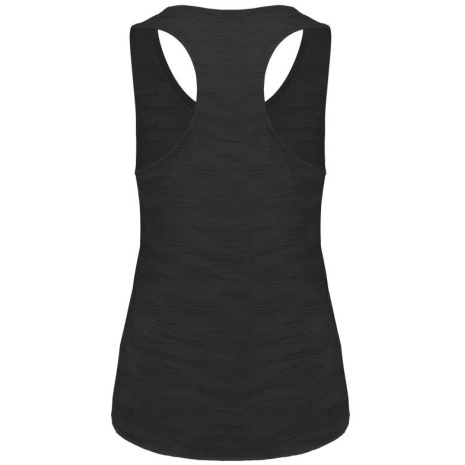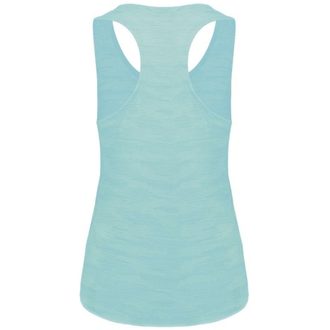 Dames sporttop Soepel jerseytricot met gevlamd effect. Ruime snit en grote mouwopeningen voor meer comfort. Blijft beter zitten dankzij de racerback. 65% polyester / 35% viscose – Soepel jersey met gevlamd effect. Ruime snit. Grote armsgaten en racerback. Ronde halsopening met nektape aan de binnenkant. Licht afgerond boord.