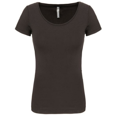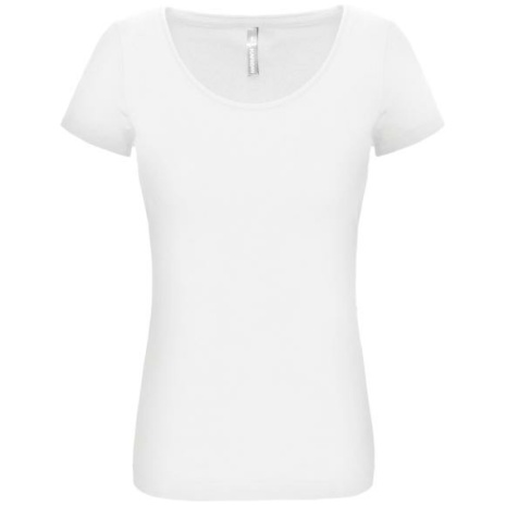 Dames t-shirt met mini-mouwtjesย Ronde hals en moderne snit. Het onmisbare dames-t-shirt. Gekamd katoen: het kledingstuk gaat lang mee. 95% katoen / 5% elasthan. Moderne en vrouwelijke snit. Gekamde jersey stof. Ruime halsopening afgewerkt met nektape. Halsopening afgewerkt met een dun biesje. Mouwuiteinden en onderkant afgewerkt met dubbele stiksels.