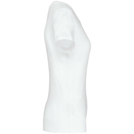 Dames-t-shirt Supima® V-hals korte mouwen. Getailleerde snit, voelt zijdezacht en aangenaam aan.