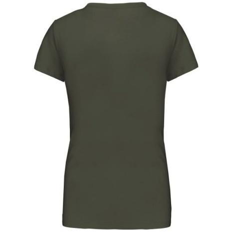 Dames T-shirt V-hals Korte Mouwen. Enzymgewassen en gekamd katoen: het oppervlak blijft ook na veel wasbeurten glad.
