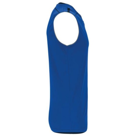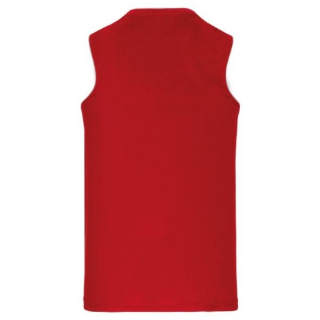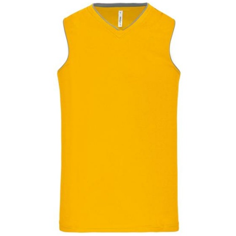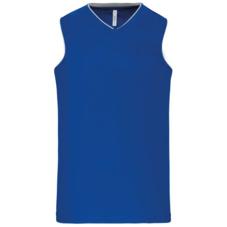 Damesbasketbalshirt 100% polyester. V-hals. Bies en oplegsel in contrastkleur. Afwerking met dubbele stiksels onderaan en aan de armsgaten.