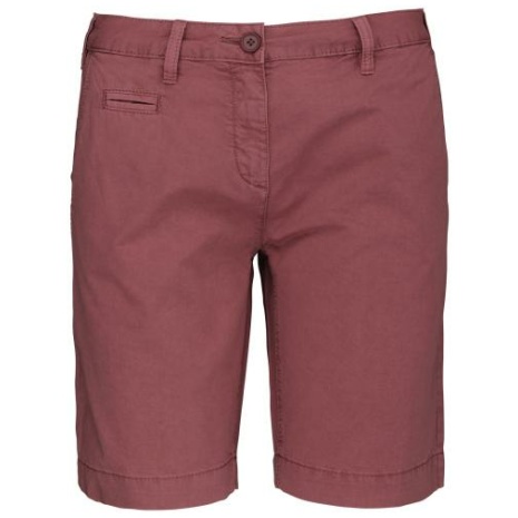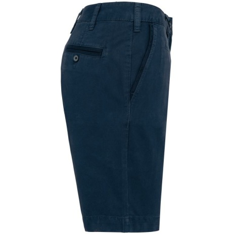 Damesbermuda met verwassen lookย Heel comfortabele en modieuze snit. Unieke afwerking met een verouderd effect. Gewassen twillstof met een grote wasweerstand. 100% katoen. Verwassen stof voor een optimaal comfort. 2 Italiaanse zijzakken waarvan รฉรฉn met 1ย muntzak, 1ย ticketzak. 2 omzoomde achterzakken met knoop en verstevigend stiksel. Ritssluiting met knoop. Riem met lussen.