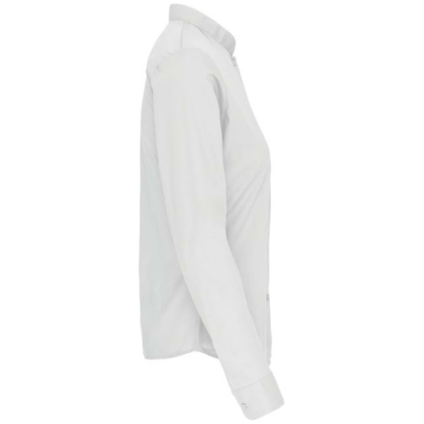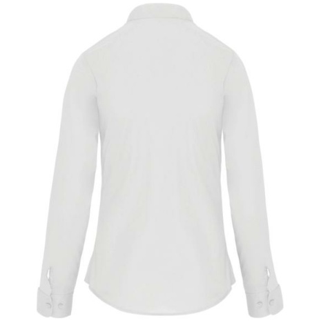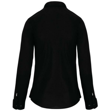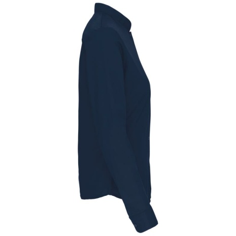 Damesblouse met “Mao” kraag lange mouwenย Het overhemd voor professionals uit de horeca. Met een chique en moderne maokraag. Easy-care behandeling voor een gemakkelijk onderhoud. 65% polyester / 35% katoen popeline. Easy Care. Mao kraag zonder knopen. Knooplijst met toon op toon knopen. Borstzakje links in de vorm van een V. Verstelbare mouwuiteinden met afgeronde manchetten. 1 reserveknoop. Onderkant afgerond.