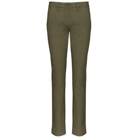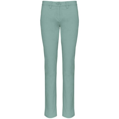 Dameschinobroek. Enzymgewassen stof voor een uitstekende bedrukbaarheid en een optimaal comfort.