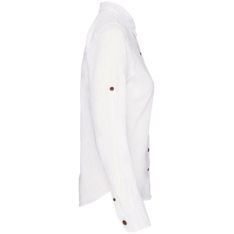 Damesoverhemd van linnen met lange mouwenย Moderne en casual look. Modieuze snit die soepel en licht valt. Zacht, comfortabel en sterk dankzij de mix van linnen en katoen. 55% linnen / 45% katoen. Contrasterende knopen. Fantasiebies op de bovenkant van de knooplijst. Verstelbare mouwuiteinden met knoop. Opstroopbare mouwen met een knooplijst. Extra knoop.