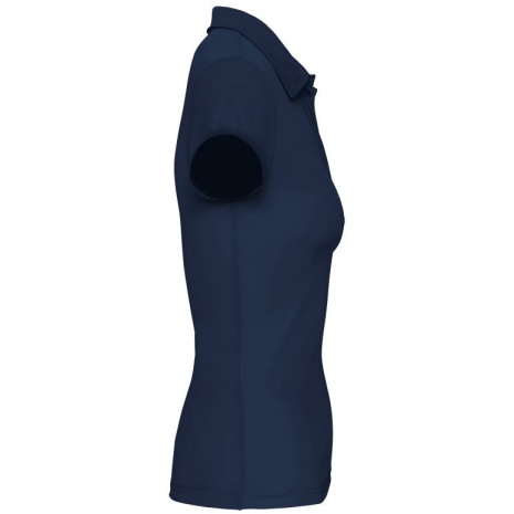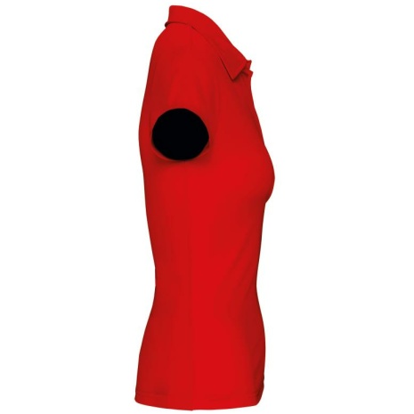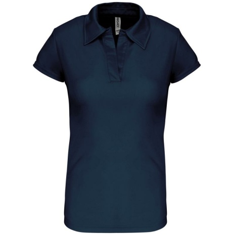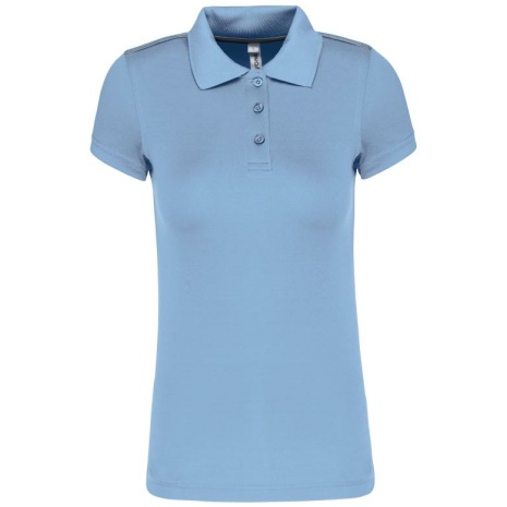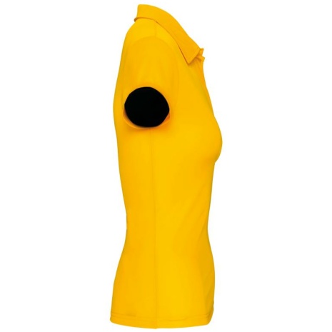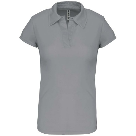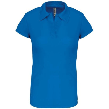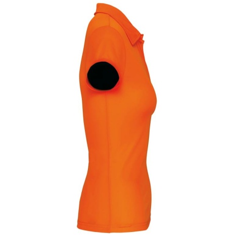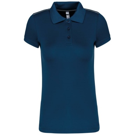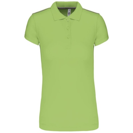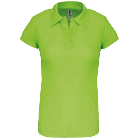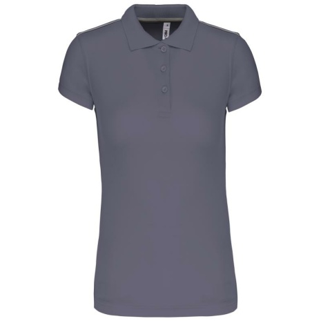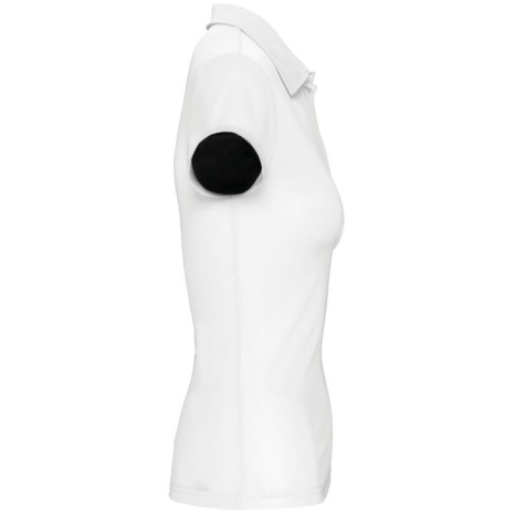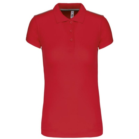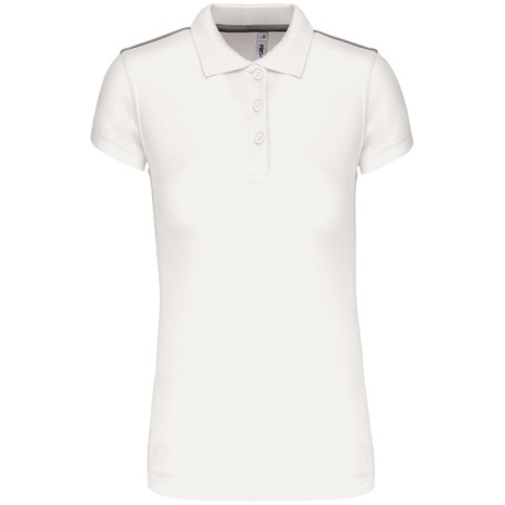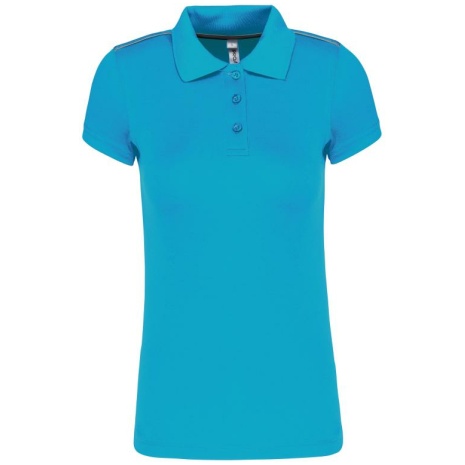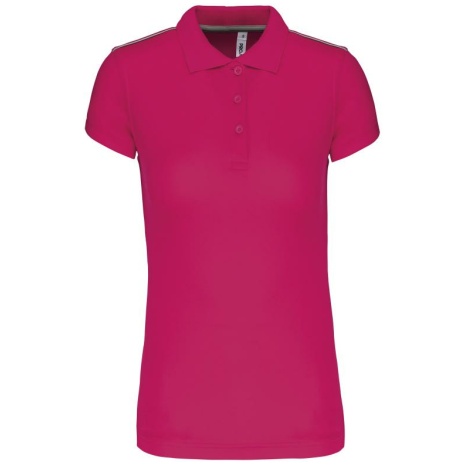 Damessportpolo. 100% interlockpolyester: heel sterk, licht en ademend.