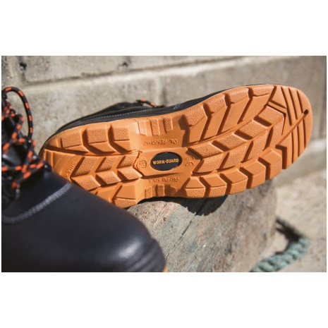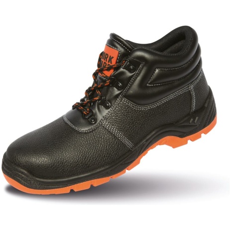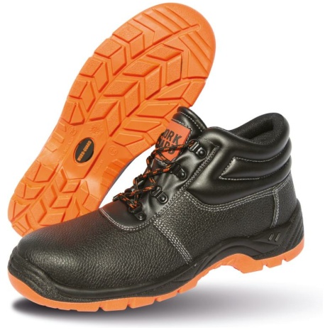 Defence Safety Bootsย Optimale bescherming, bestand tegen schurende stoffen. Antislip- en antischokzolen. Gewatteerde enkels voor een optimaal comfort. Hoge schoen. Zwarte lederen bovenkant met embossing. Zwart mesh aan de binnenkant ter hoogte van de enkel. Glanzende zwarte eyelets. Inclusief 3 sets veters (Orange, Black en Orange / Black). Duel density PU-zool. Stalen neus en stalen tussenzool voor bescherming onder de voeten. Getwatterde enkelkraag en bovenkant. Schokdempende hiel. Waterbestendig leder. Zool oliebestendig. EN 20345:2011 S1P SRA.