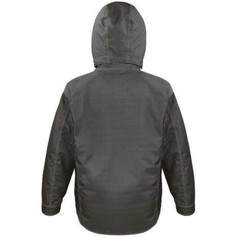 Denim texture rugged jacketย Heel sterke sluiting en naden. Warm en waterproof kledingstuk. Reflecterende strook om de veiligheid te verzekeren. Parka buitenzijde 100% polyester 170g/mยฒ, gedeeltelijk gevoerd in 100% polyesterfleece, met vulling 230ย g/mยฒ. Parka-windbreaker, waterdicht 3000 mm met thermogelaste naden en ademend 2000 g/mยฒ/24ย u. Polartherm fleecevoering. Ritssluiting in 2ย richtingen met meegeleverde, verwisselbare gekleurde schuivers. 4 ritszakken aan de buitenkant en 2 ritszakken aan de binnenkant. D-vormige ring in de borstzak links. Opstaande kraag en afneembare capuchon. Langer rugpand, verstelbaar aan de onderkant. Regelbare mouwuiteinden met klittenband. Stormoverslag met drukknopen. Contrasterende en versterkte naden en reflecterende details. Ophanglusje in de kraag genaaid.