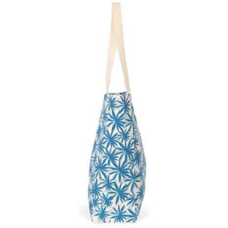 Ecologische shopperย Plooien aan de zij- en onderkant. Biokatoen met GOTS-label. Handig en duurzaam. 100% biologish katoen. Bladprint of naturel effren tas met effren. Contrasterende hengsels. Grote zijvouw aan de zij- en onderkant.