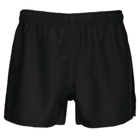 Elite Rugby short. Blijft goed zitten dankzij de elastische tailleband en aanrijgkoordjes met silicone antislipband.