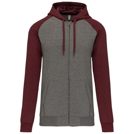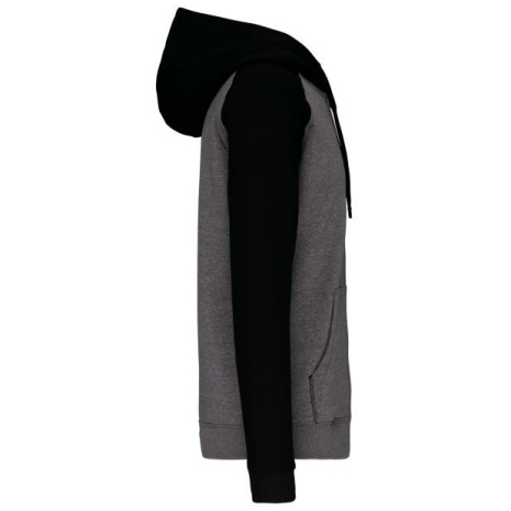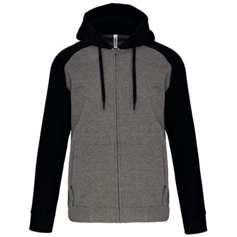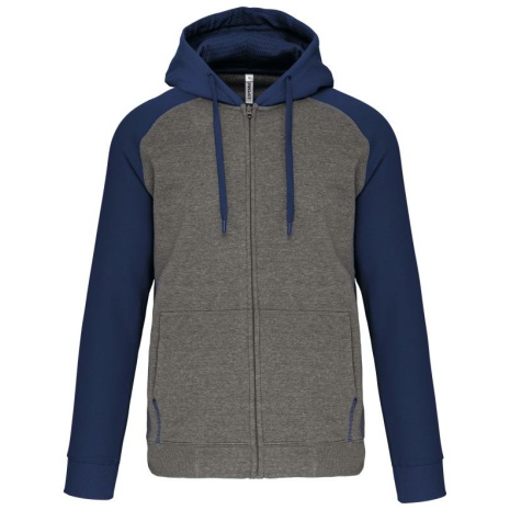 Fleece met rits en tweekleurige capuchon unisex Geborsteld fleece aan de binnenkant voor meer zachtheid en comfort. Kangoeroezakken met fluorescerend gsm-zakje. Opening voor headsetsnoer. 65% polyester / 35% katoen. Geborsteld fleece aan de binnenkant. Ritssluiting. Contrasterende raglanmouwen en capuchon. Capuchon gevoerd met toon op toon mesh. Kangoeroezakken met fluorescerend gsm-zakje. Opening voor headset-snoer. Mouwboorden en onderzijde in 2×2 ribboord met dubbele dikte.