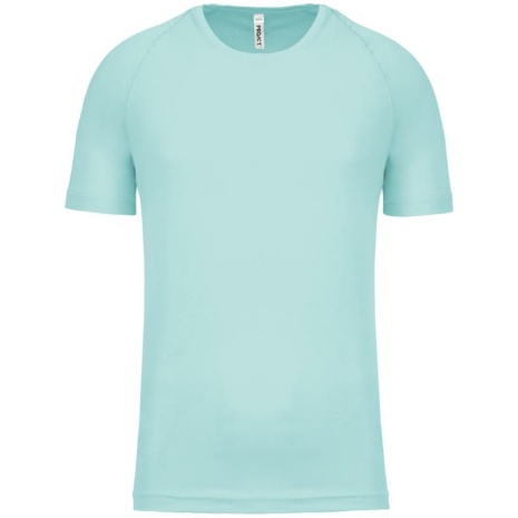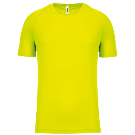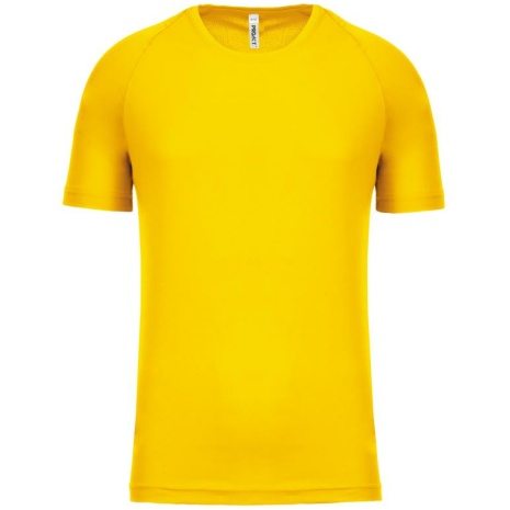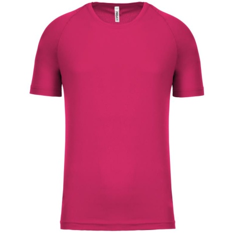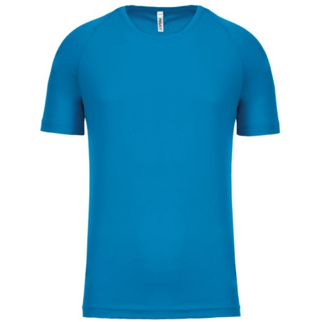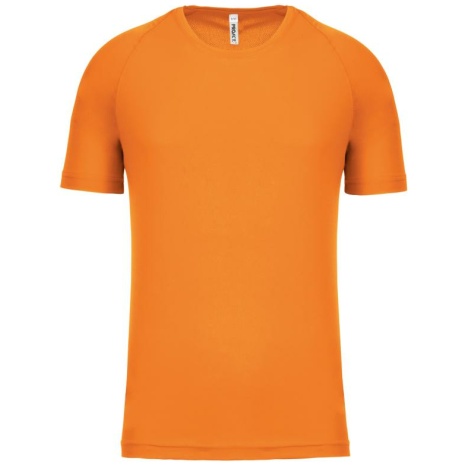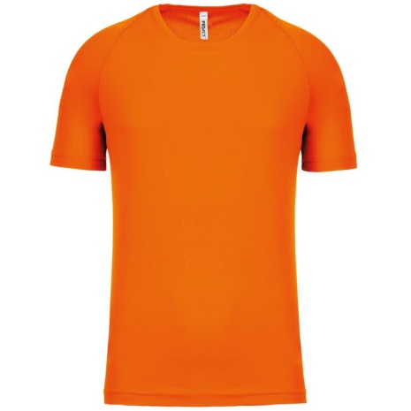 Functioneel Kindersportshirt 100% polyester: heel sterk, licht en ademend. Lichte en sneldrogende stof. Ronde halsopening met nektape aan de binnenkant. 100% polyester. Sneldrogende lichte stof. Ronde hals. Nektape. Raglan mouwen met overstiksels. Afwerking met dubbele stiksels aan de mouwuiteinden en onderkant.