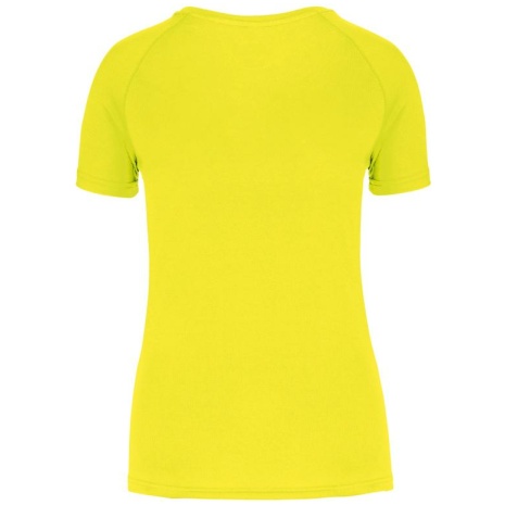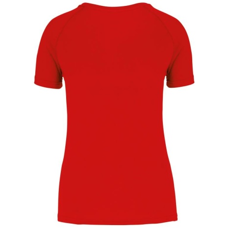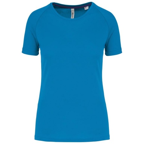 Gerecycled damessport-T-shirt met ronde hals Lichte en sneldrogende stof voor meer comfort tijdens de inspanning. Rechte snit en raglanmouwen voor meer bewegingsvrijheid. Milieuvriendelijk materiaal. 100% polyester. Gemaakt van 100% gerecycled polyester. Lichte en sneldrogende stof. Rechte snit. Ronde halsopening met contrasterende nektape aan de binnenkant. Raglanmouwen met toon op toon stiksels. Dubbel stiksel aan halsopening, mouwuiteinden en onderkant kledingstuk. Buisvormig aan de onderste zoom en aan het mouwuiteinden. Afscheurbaar merklabel voor eenvoudige personalisatie.