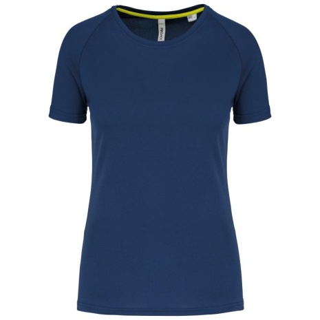 Gerecycled damessport-T-shirt met ronde hals. Lichte en sneldrogende stof voor meer comfort tijdens de inspanning.