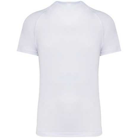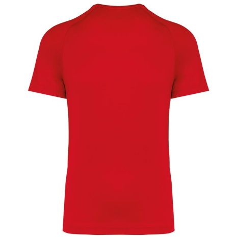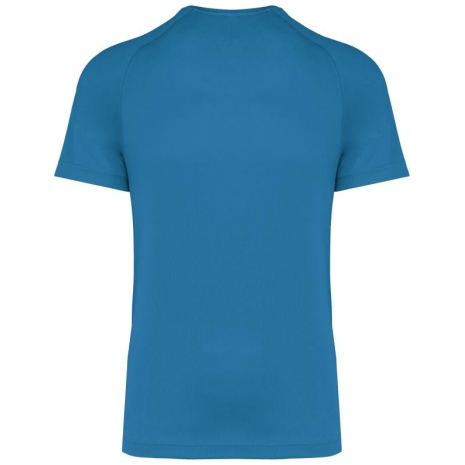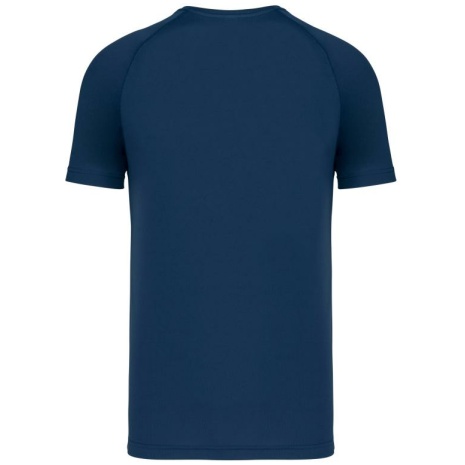 Gerecycled herensport-T-shirt met ronde hals Lichte en sneldrogende stof voor meer comfort tijdens de inspanning. Rechte snit en raglanmouwen voor meer bewegingsvrijheid. Milieuvriendelijk materiaal. 100% polyester. Gemaakt van 100% gerecycled polyester. Lichte en sneldrogende stof. Rechte snit. Ronde halsopening met contrasterende nektape aan de binnenkant. Raglanmouwen met toon op toon stiksels. Dubbel stiksel aan halsopening, mouwuiteinden en onderkant kledingstuk. Buisvormig aan de onderste zoom en aan het mouwuiteinden. Afscheurbaar merklabel voor eenvoudige personalisatie.
