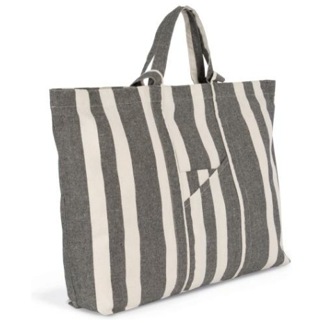 Gerecyclede reistas – Gestreeptย Reistas gemaakt van gerecycled materiaal. Originele gestreepte stof. Binnenzak met rits en twee asymmetrische zakken vooraan. 67% katoen / 30% polyester / 3% andere vezels. Deze reistas bestaat uit 67% gerecycled katoen en 30% gerecycled polyester. De binnenkant van de tas is gevoerd met een contrasterende stof en heeft een ritssluiting. De tas heeft een binnenvak met een ritssluiting,twee asymmetrische voorzakken en twee gewoven hengsels in hetzelfde materiaal als de tas. Kan worden gedragen als eenhandtas of schoudertas. Om te dragen als hand- of schoudertas. Het gestreepte motief liet zich inspireren door de skyline van grote steden en geeft ieder stuk een unieke look. Past perfect bij shopper KI5213 en tasje KI5705.