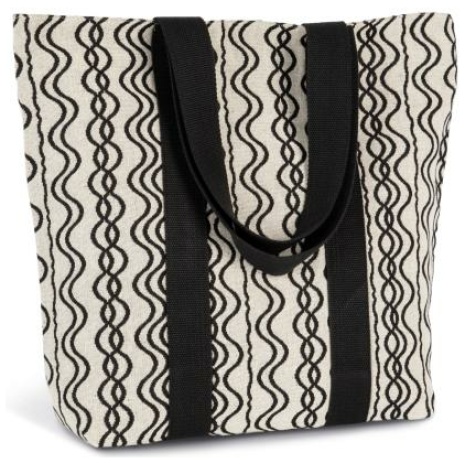 Gerecyclede shopper – Golfmotiefย Shopper gemaakt van gerecycled materiaal. Origineel jacquardweefsel. Hengsels van 4ย cm breed, voor meer comfort. 67% katoen / 30% polyester / 3% andere vezels. Deze shopper bestaat uit 67% gerecycled katoen en 30% gerecycled polyester. De binnenkant van de tas werd gevoerd met een stof in een contrasterende kleur en kreeg een ritssluiting. De hengsels van 4ย cm breed bieden meer comfort. Het jacquardweefsel geeft ieder stuk een unieke look.