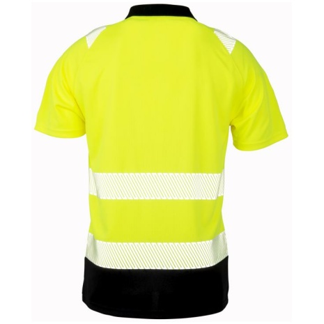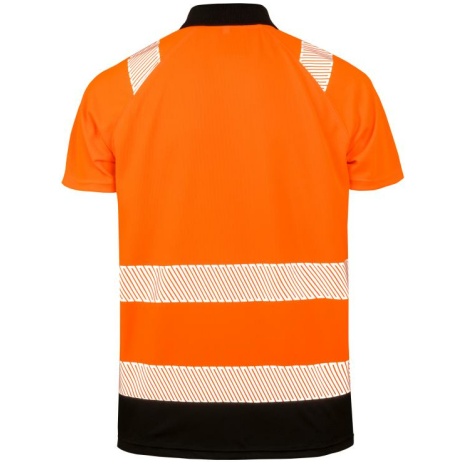 Gerecyclede veiligheidspolo. Stretchy bedrukte reflecterende afwerkingen.