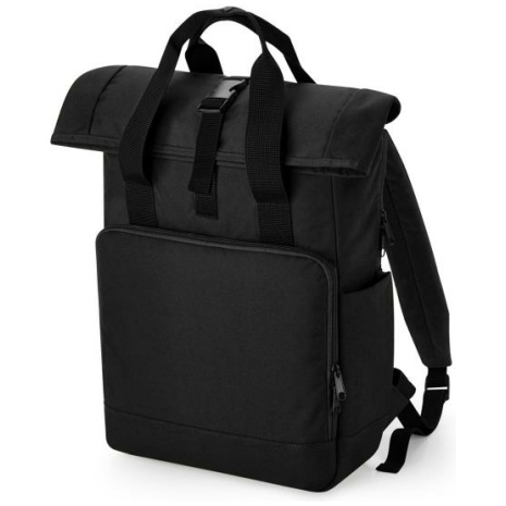 Gerecycleerde rugzak voor laptopย Groot en handig formaat voor elk laptopmodel. Veel zakken. 100% polyester. 300D gerecycleerd polyester van 100% polyethyleentereftalaat, het equivalent van ongeveer 12ย post-consumer petflessen. Geschikt voor laptops van max. 15,6″. Gewatteerd en beveiligd laptopvak met toegang van buitenaf. Voorste zak met organizer. Voorste zak ontworpen voor een gemakkelijke decoratie. Drinkbuszak binnenin. Ritszak binnenin. Gewatteerde achterkant. Rolsluiting. Verstelbare gewatteerde schouderbanden. Handgrepen van canvas. Afneembaar TearAway-etiket, makkelijk opnieuw te labelen.