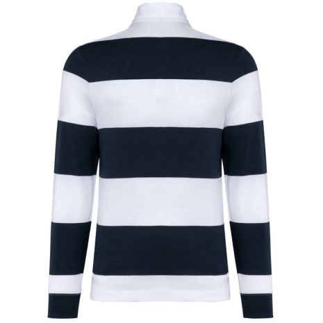 Gestreepte uniseks polo lange mouwenย Enzymgewassen stof, perfect bedrukbaar. Gekamd katoen: het kledingstuk gaat lang mee. Trendy, comfortabele fitted pasvorm. 100% katoen. Gekamd katoen. Compact garen. Jersey. Enzymgewassen. Kraag in contrasterend twillkatoen voor alle kleuren. Fitted pasvorm. Knooplijst met onzichtbare knoopsgaten. 3 toon-op-toon rubberen knopen. Schouderversteviging in silicone voor een betere pasvorm. Afwerking mouwuiteinde in buisvormige gevoerde 1×1 ribboord voor een betere afwerking met dubbel stiksel. Onderkant afgewerkt met dubbel stiksel en twee zijsplitten met nektape in de hoofdstof in een contrasterende kleur. In de mouwuiteinden zit elasthan om vervorming van de manchet te voorkomen. Afscheurbaar merklabel en maatlabel in de kraag voor eenvoudige personalisatie.