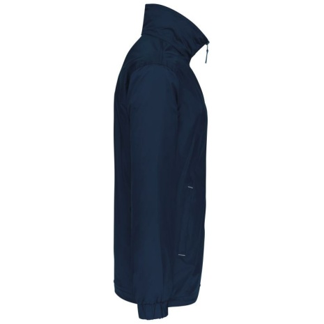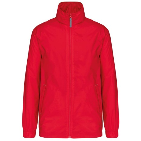 Gevoerde windbreaker herenย Sterk, soepel en onderhoudsvriendelijk materiaal. Voering van lichaam en mouwen om de warmte goed vast te houden. Acrylcoating voor een betere waterdichtheid van de stof. 100% polyamide 210 T met acryl inductie. Ritssluiting. 2 voorzakken met contrasterende stopstiksels. 1 binnenzak. Binnenvoering in 100 % polyester: 3/4 in polytricot et 1/4 in net. Voering van de mouwen in 100% polyester. Elastisch aanrijgkoord met stoppers aan de onderkant. Capuchon verwerkt in de kraag. Drukkersrits.