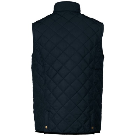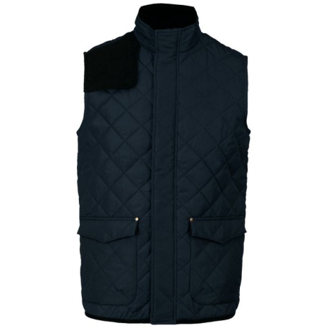 Gewatteerde herenbodywarmer. Kraag afgewerkt met ribfluweel, voor meer comfort.