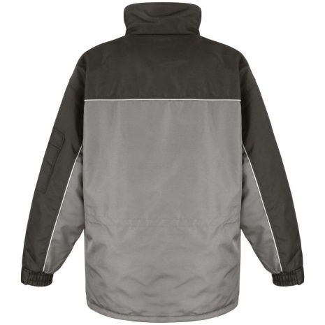 Heavy Duty Combo Coatย Sterke, dikke en duurzame stof. Houdt de warmte vast. Reflecterende inzetsels om veilig te werken. Buitenkant: 600D heavy duty oxford Taslon met PU coating. Wattering: 100% polyester 160 gram. Binnenvoering: bovenkant 100% polyester fleece en onderkant 100% 190T nylon taffeta. Versterkte naden. Kraag met fleece gevoerd. 3MโขScotchlite โข reflecterende piping op de voor- en achterkant en op de mouwen. Volledige ritssluiting met stormoverslag met drukknopen. Lusjes voor headset. 2 opgezette zakken, 2 borstzakken met 3 penhouders en 2 sleutelringen (waarvan 1 veborgen) en GSM zak. 2 binnenzakken en een groot vak van mesh. Elastische mouwuiteinden en onderkant. Drukkersritsen.