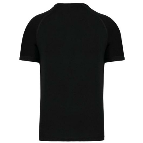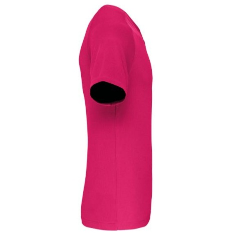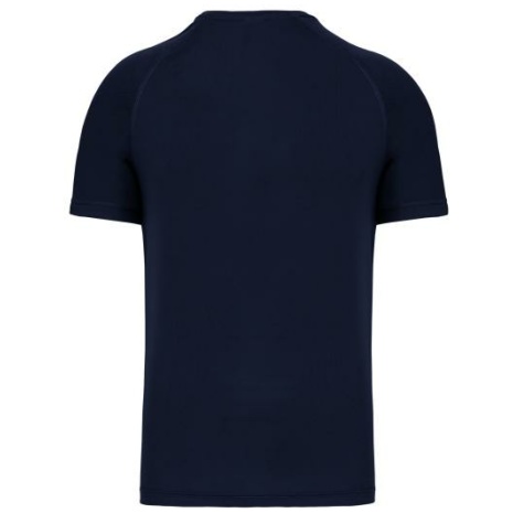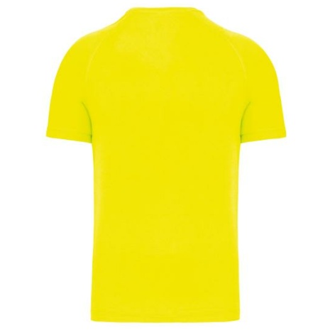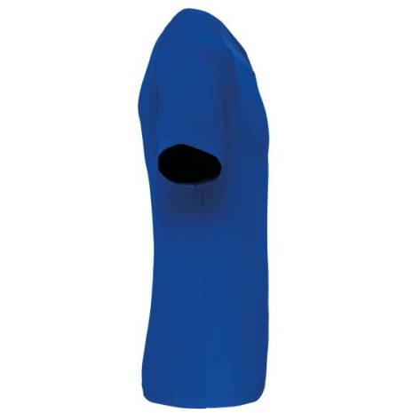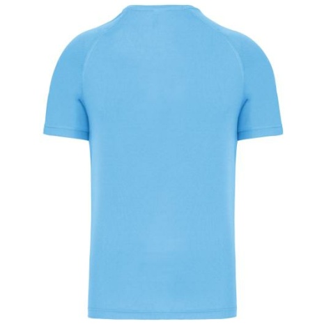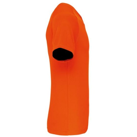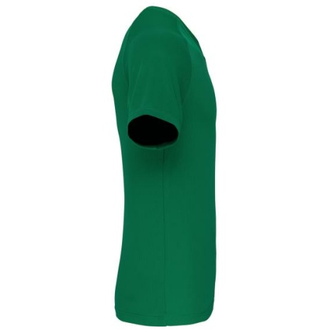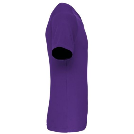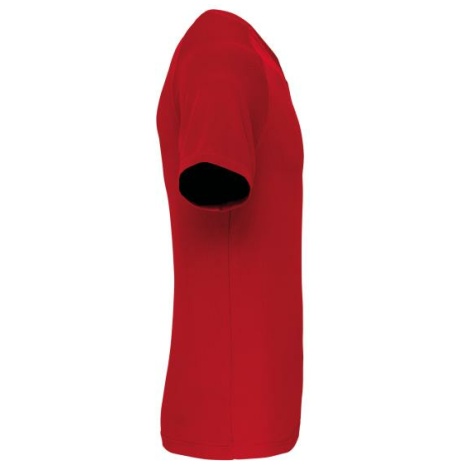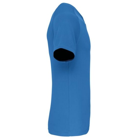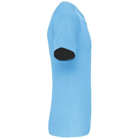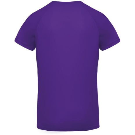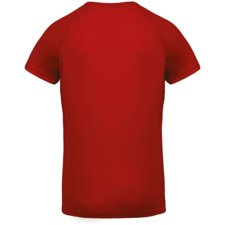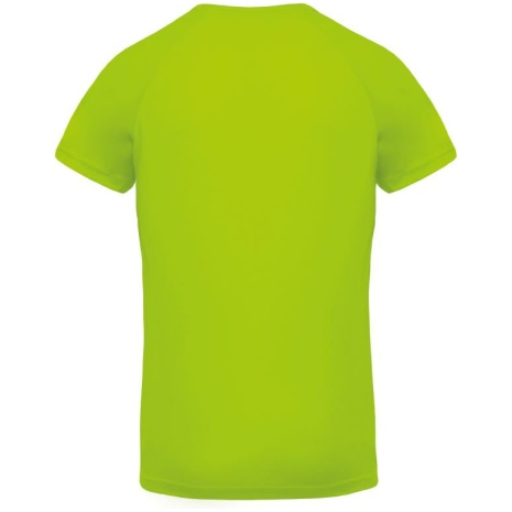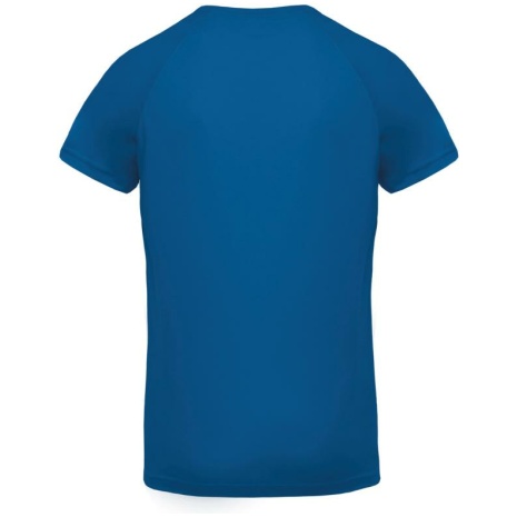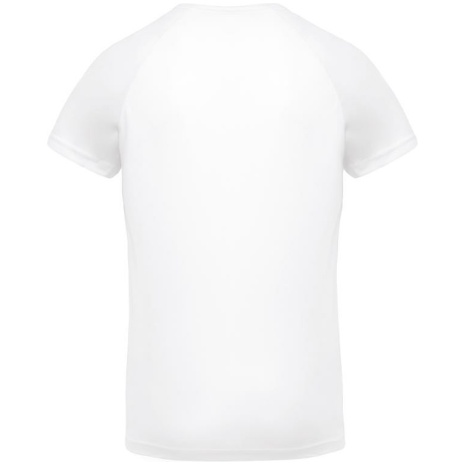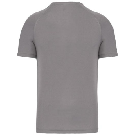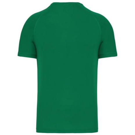 Heren-sport-t-shirt V-hals 100% polyester: heel sterk, licht en ademend. Sneldrogende stof. V-hals met nektape. 100% polyester. Sneldrogende stof. V-hals met nektape. Raglanmouwen met overlocksteek. Dubbel stiksel aan de mouwuiteinden en onderkant kledingstuk.