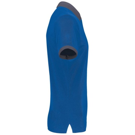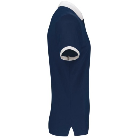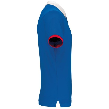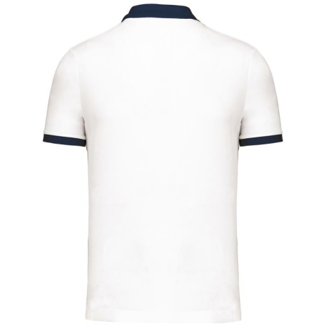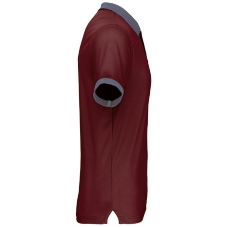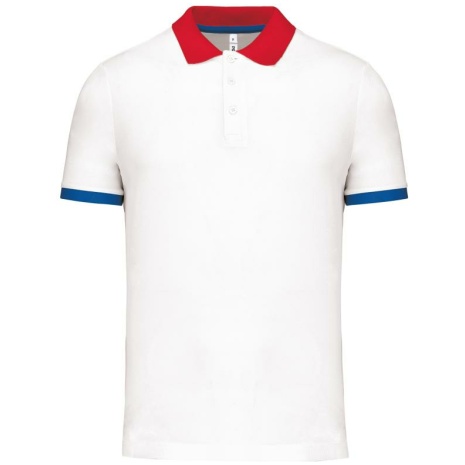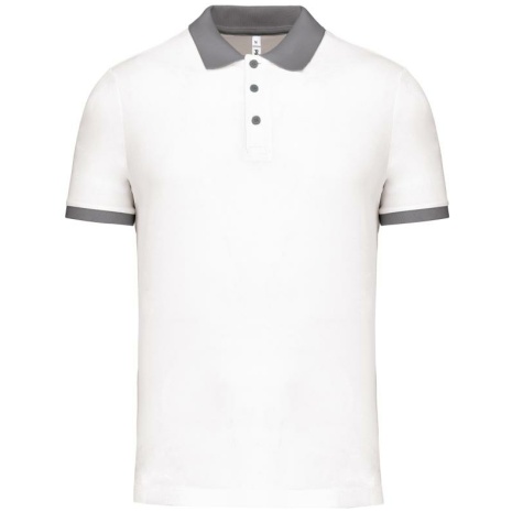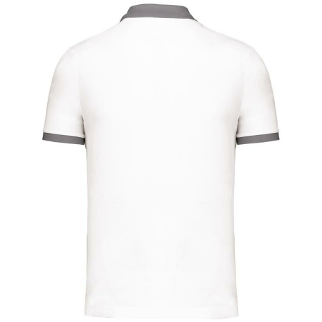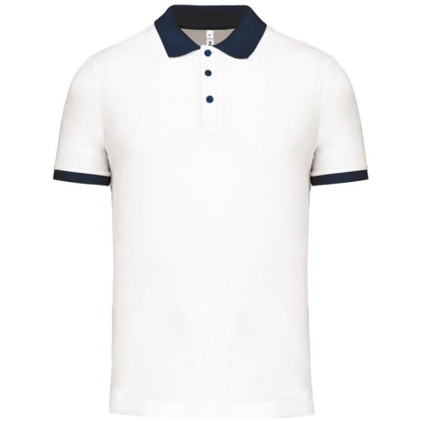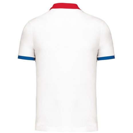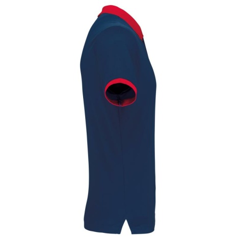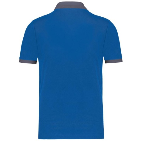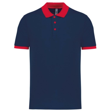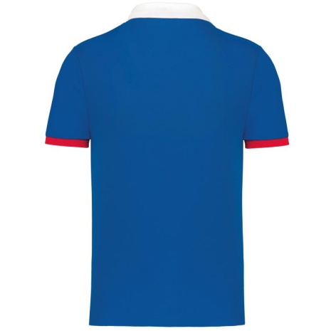 Heren-sportpolo 100% interlockpolyester: heel sterk, licht en ademend. Fitted pasvorm en moderne look. 100% piquépolyester Cool Plus®. Fitted pasvorm en moderne look. Kraag en mouwuiteinden in contrasterende ribboord. Knoopsluiting met 3 knopen (contrasterend of effen, afhankelijk van het model). Zijsplitten.