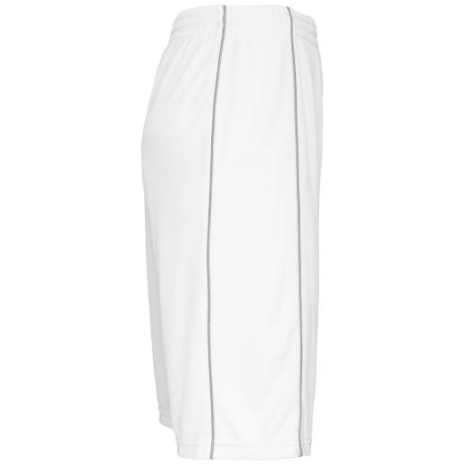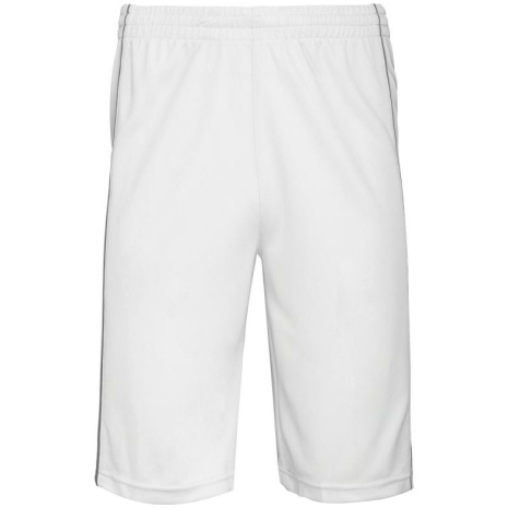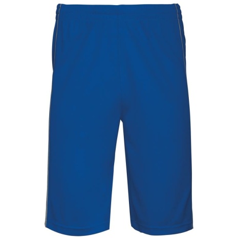 Herenbasketbal short Blijft goed zitten dankzij de elastische tailleband met aanrijgkoordjes. Afwerking met dubbel stiksel onderaan voor een kwaliteitsvolle afwerking. 100% polyester. Elastische tailleband met aanrijgkoord. Bies in contrastkleur op de naden op de voor-en achterkant. Afwerking met dubbele stiksels aan de onderkant.
