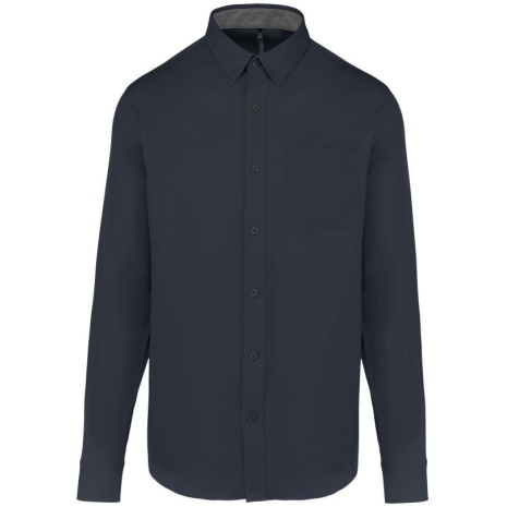 Herenoverhemd met lange mouwen van katoen Nevadaย Fluweelachtige twillstof voor duurzaamheid en comfort. Overhemd met een casual look. Gemaakt uit 100% katoen. 100% katoen. Fluweelachtige twillstof. Kraagpunt met knoop. Toon-op-toon knopen. Borstzak aan de linkerkant. Binnenkant kraagstaander en mouwuiteinden in contrasterende kleur Oxford silver. Achterkant met 2ย ruimteplooien en gevoerd inzetstuk. Afgewerkt met omgeslagen naden. Verstelbare mouwuiteinden met knoop. Extra knoop.