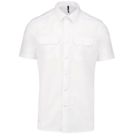 Herenpilootoverhemd korte mouwenย Elegante, professionele look. Easy-care behandeling voor een gemakkelijk onderhoud. Ideaal voor professioneel gebruik. 65% polyester / 35% popelinekatoen. Gemakkelijk in onderhoud (EasyCare-behandeling). Toon op toon knopen. 2 borstzakken met klep, waarvan aan de linkerkant een met plaats voor een pen. Ruimteplooi op de achterkant. Knooplijst op de schouders om galons te bevestigen (epauletten niet meegeleverd). Afgewerkt met omslag aan de mouwuiteinden.