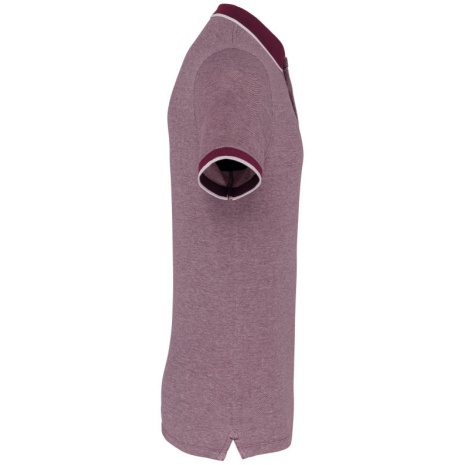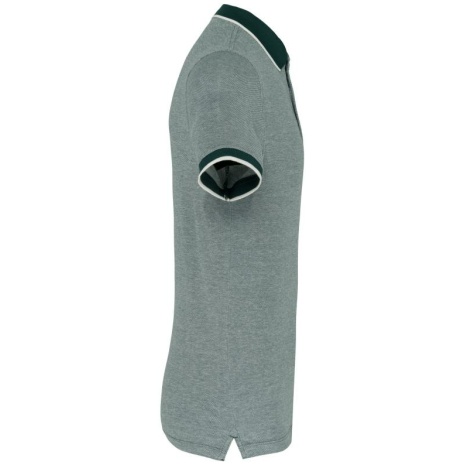 Herenpolo tweekleurige mixย Trendy, casual look. Soepele en zachte stof gemaakt uit piquรฉtricot van 100% gekamd katoen. Contrasterende kraag en mouwuiteinden met biesje. 100% katoen. Katoenen, gekamd piquรฉtricot. Kraag in ribboord op staander. Ribboord met contrasterend biesje. Knooplijst met 3 contrasterende knopen. Zijsplitten. Ribboord aan mouwuiteinden. Dubbel stiksel aan de onderkant.
