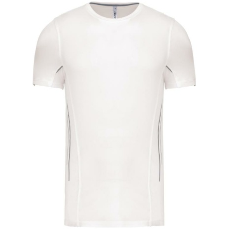 Herensportshirt Lichte, ademende stof. De technische honinggraatstof verhoogt het comfort en voert zweet beter af. Reflecterende designelementen op de inzetstukken vooraan en onder aan de rug. 50% polyester Top Cool® / 50 % polyester. Lichte stof. Ademend achterpand dankzij honinggraatstructuur voor extra comfort. Modieuze reflecterende inzetstukken aan de voor- en achterkant. Korte mouwen met gecontrasteerde biesjes aan de voor- en achterkant. Gecontrasteerde nektape.