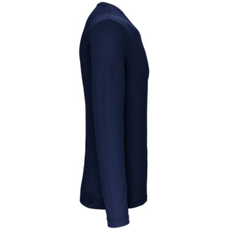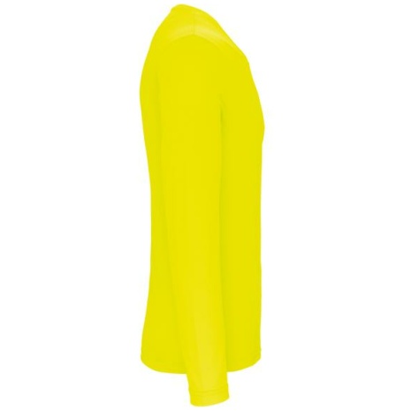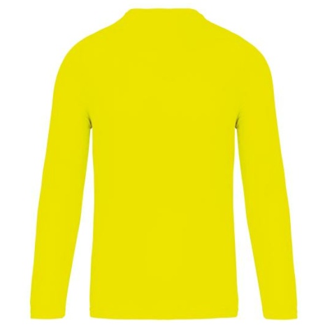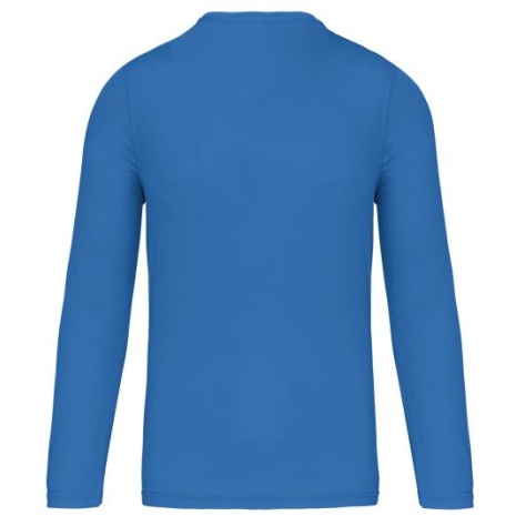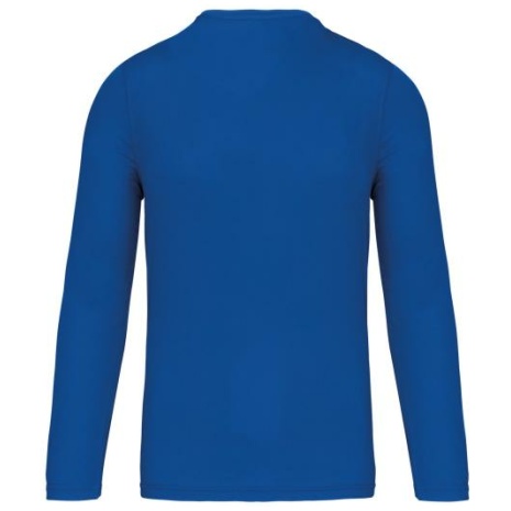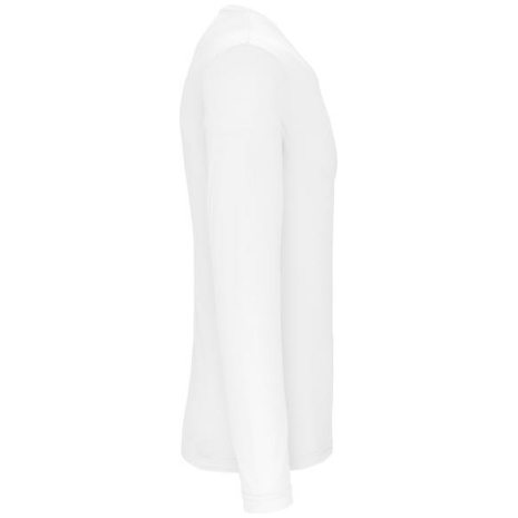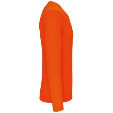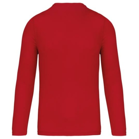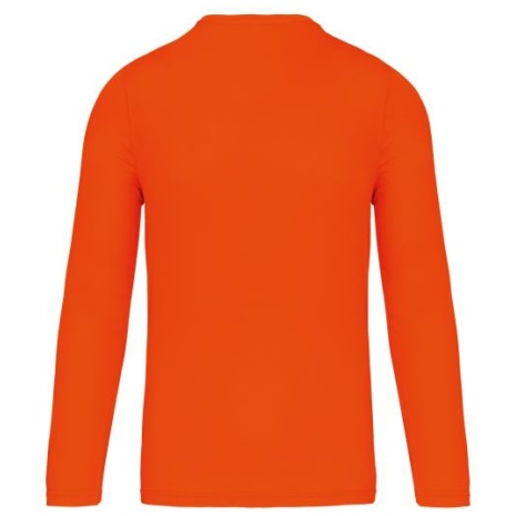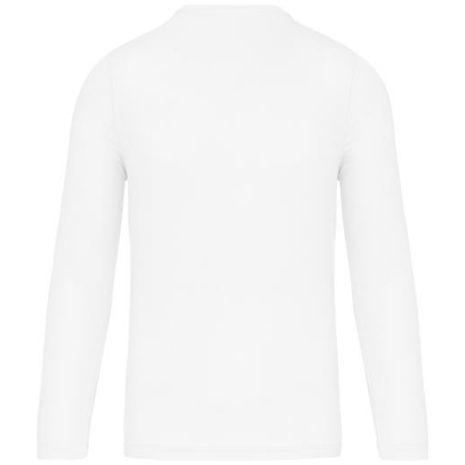 Herensportshirt Lange Mouwen Lichte en sneldrogende stof. 100% polyester : heel sterk, licht en ademend. Ronde halsopening met nektape aan de binnenkant. 100% polyester. Sneldrogende lichte stof. Ronde hals. Nektape. Afwerking met dubbele stiksels aan de mouwuiteinden en onderkant.