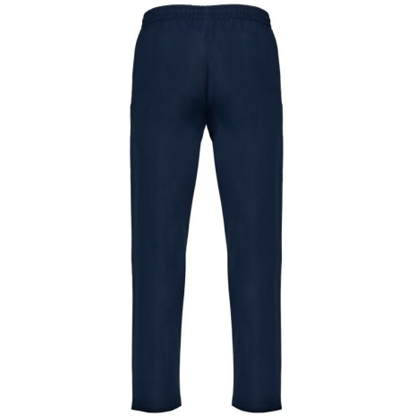 Herentrainingsbroek Blijft goed zitten dankzij de elastische tailleband met aanrijgkoordjes. 2 ritszakken opzij. 100% polyester diamond. Volledige mesh voering. Elastische tailleband met aanrijgkoord. 2 zijzakken met rits. Onderkant broekspijpen met rits.