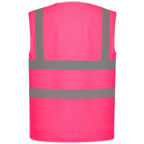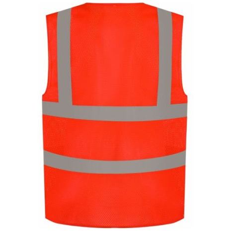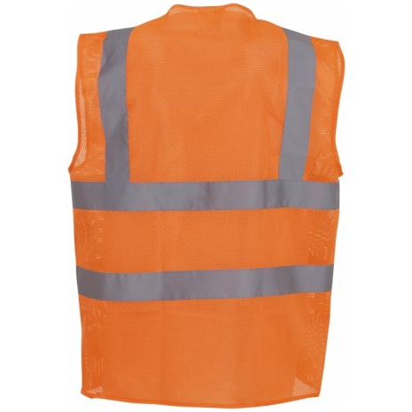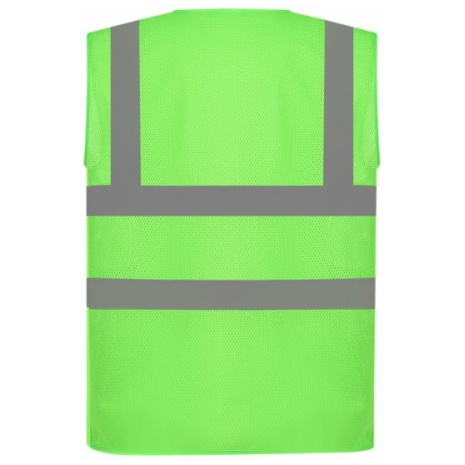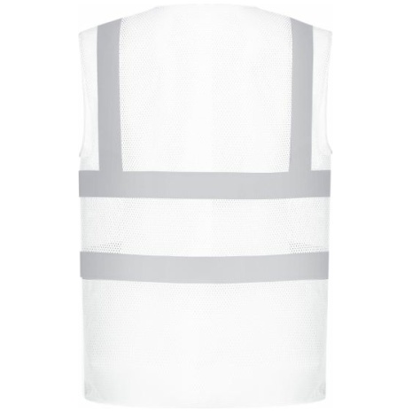 Hoge zichtbaarheid vest van gerecycleerd gaasย Licht en ademend tricot Brede reflecterende stroken rond het lichaam en รฉรฉn op iedere schouder Sluiting met Velcroยฎ op de voorkant 100% polyester. 100% gerecycled polyester. Gemaakt van petflessen. Gemaakt van ademende, licht gebreide gaas. 5 cm brede reflectieband rond het lichaam en over elke schouder. Velcroยฎ sluiting vooraan. Conform aan de Amerikaanse Nationale Norm ANSI/ISEA 107-2004 en Europese EN ISO20471:2013 Klasse 2 : enkel Hi-Vis Orange en H-Vis Yellow.