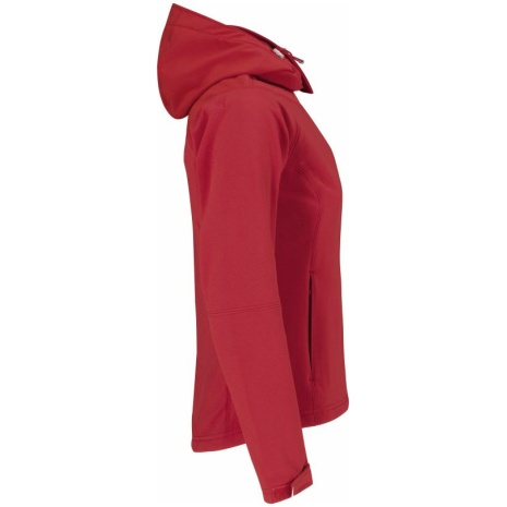 Hooded Softshell Women Softshell 3 lagen. Waterdicht 5000 mm. Ademend 1000 g/m²/24 u. Warmte-isolerende binnenlaag. 94% polyester / 6% elasthan. Buitenkant: Softshell geweven. Membraan: Vast /ademend met microgaatjes. Binnenkant: pluisvrije microfleece. Waterafstotend, winddicht en warmte houdend. Waterdicht tot 5000 mm. Ademend 1000 MVP. Afneembare capuchon. Vrouwelijke pasvorm. Perfecte mouwvorm voor armen en ellebogen. Afneembare Balaclava capuchon met aanpasbare trekkoorden en trendy stoppers. Volledige ritsopening met kinbeschermer. Volledige binnenzak van softshell stof. 2 zakken opzij met rits. Raglan mouwen. Omgekeerde ritssluitingen voor een trendy look. Manchetten met Velcro® sluitingen. Versierde plastic trekker. Plat stiksel voor meer comfort. Open boord met “lage rug”, elastische koorden en 2 gemakkelijke regelaarstoppers. Vlotte toegang om te bedrukken en te borduren met ritsopening aan de borst.