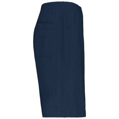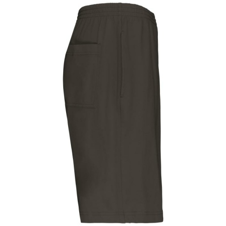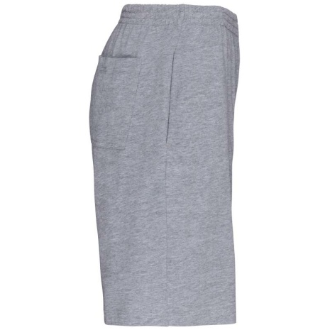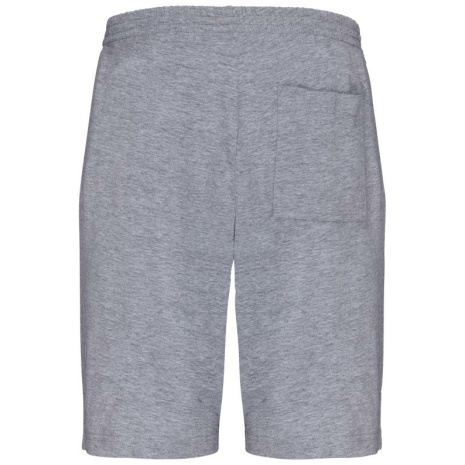 Jersey herenshort Voorgekrompen ring-spun tricot voor een heel rekbare en comfortabele stof. 2 zijzakken en 1 opgezette zak op de achterkant. Blijft goed zitten dankzij de elastische tailleband, voor meer comfort. 100% voorgekrompen ringgesponnen katoen (Oxford Grey 90% katoen / 10% viscose). 2 zakken en 1 achterzak. Elastische tailleband. Afwerking met dubbele stiksels.