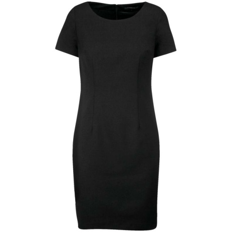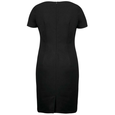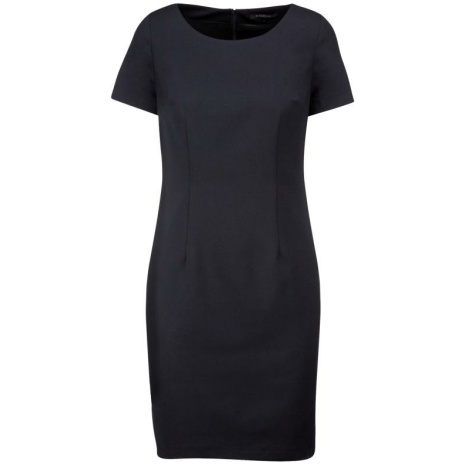 Jurk met korte mouwenย Chique en minimalistische stijl. Een klassieke en elegante getailleerde snit. De klassieke professionele jurk. 64% polyester / 34% viscose / 2% elasthan. Rekbare voering voor meer comfort. Klassieke, getailleerde pasvorm. Ruimtesplit en blinde rits op de achterkant.