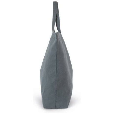 ‘K-loop’-shopper van XL-formaat XL-shopper gemaakt van gerecycleerd katoen en gerecycleerd polyester. Grote, stevige tas. Deze tas is onderdeel van het ‘K-loop’-project. Gerecycled katoen/gerecycled polyester. Zeer grote shopper met handgrepen in dezelfde stof als de tas. Deze tas is onderdeel van het ‘K-loop’-project. Met dit project sluit Kimood de kring van de circulaire economie in de strikte zin van het woord. Het gebruikte katoen is immers afkomstig van het productieafval van de katoenproducten van het merk Kariban en uit het KARIBAN BRANDS-assortiment. Het toegevoegde polyester is afkomstig van de recycling van PET-plastic flessen. Tijdens het recyclingproces worden aan het garen tracers toegevoegd, namelijk viscose- en keramische filamenten die als een unieke digitale afdruk fungeren. De tracers weerkaatsen het licht op een unieke manier en dragen daardoor een unieke en onbreekbare code. Hierdoor kunnen we dus in een blockchain alle informatie opslaan over de processen waaraan het garen op unieke wijze werd onderworpen. Dankzij de Aware™-tracertechnologie en het bijbehorende blockchainplatform kan de eindconsument bij Kimood het hele productieproces volgen. Dit garandeert dat het product werd gerecycled met zijn eigen afval, zonder mogelijke aanpassingen aan het proces. Een speciaal label met een QR-code biedt toegang tot het Aware™-platform. Zo kunnen de certificeringen makkelijk worden geraadpleegd met een smartphone.
