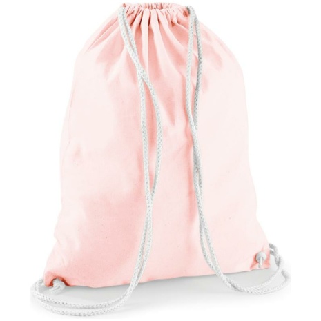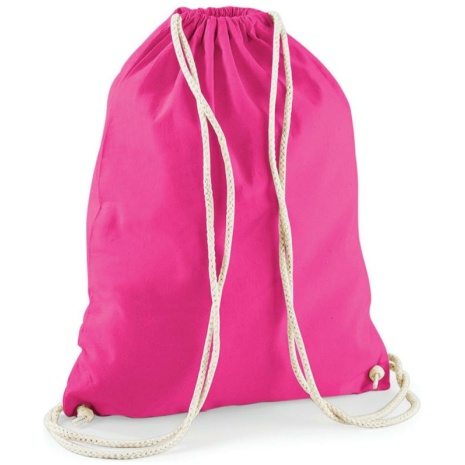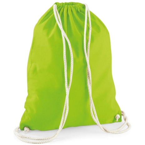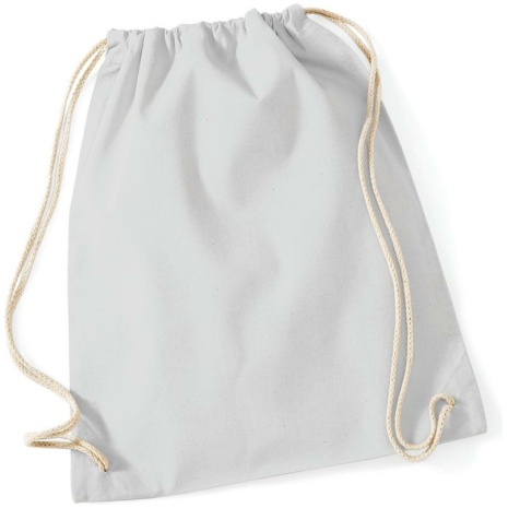 Katoenen gymtasย Glad oppervlak, ideaal voor zeefdruk. Dik en sterk katoen. Handige sluiting. 100% Katoen, Sluiting met trekkoord, Het “natuurlijke” alternatief voor polyester gymtassen