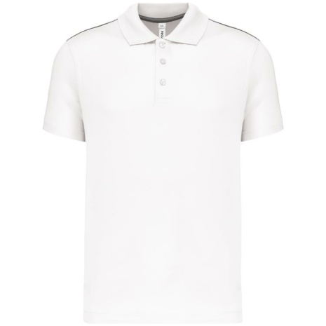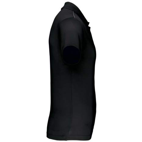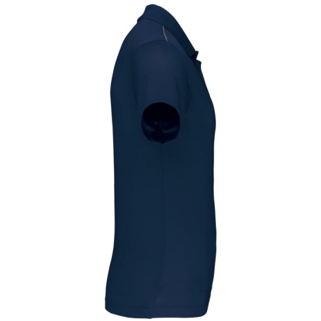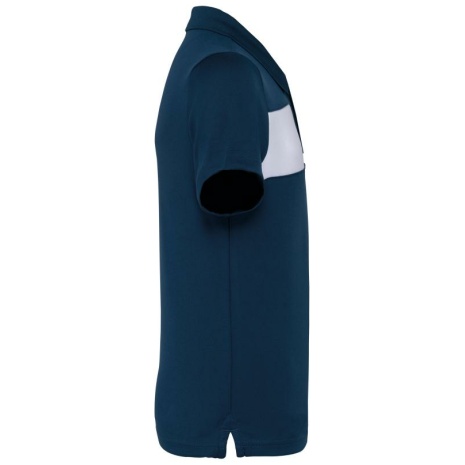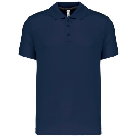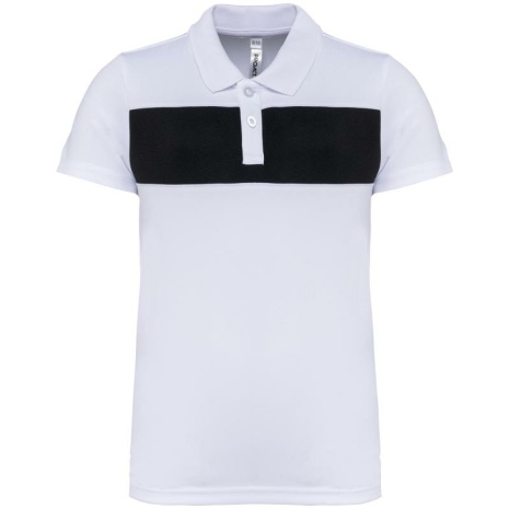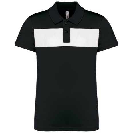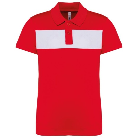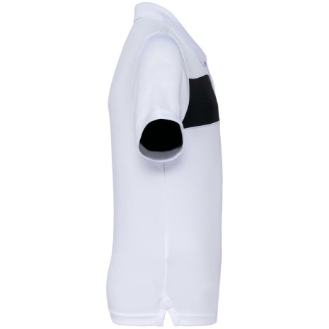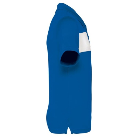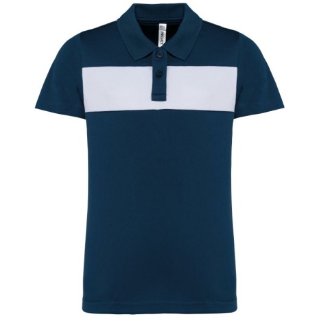 Kinderpolo korte mouwen 100% interlockpolyester: heel sterk, licht en ademend. Sneldrogende stof. Contrasterende nektape in de hals en op de zijsplitten. 100% interlockpolyester. Sneldrogende stof. Kraag in ribboord. Knooplijst met 3 knopen. Contrasterende nektape in de hals en op de zijsplitten. Contrasterende bies aan de schouders. Dubbel stiksel aan mouwuiteinden en onderkant .